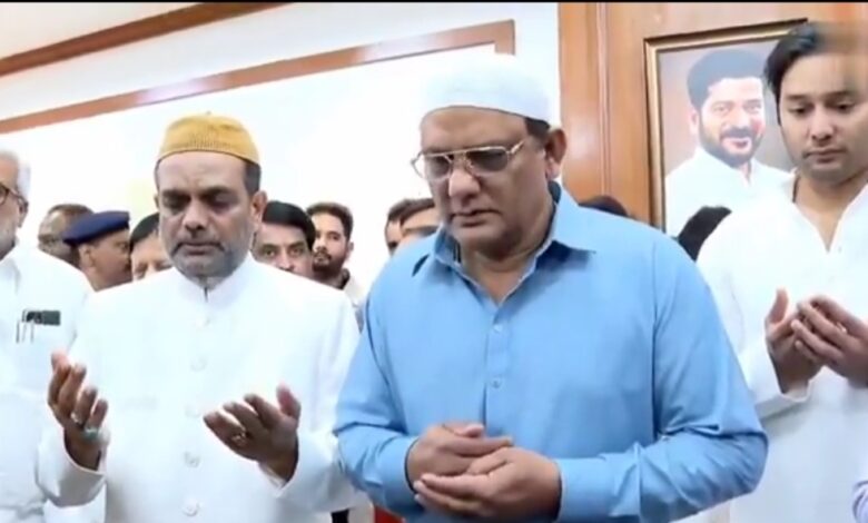 تلنگانہ سیکریٹریٹ بی آر امبیڈکر بھون میں سابق کرکٹر اور کانگریس قائد محمد اظہرالدین نے ریاست کے اقلیتی بہبود اور پبلک انٹرپرائزز کے وزیر کی حیثیت سے اپنی ذمہ داریاں سنبھال لیں۔