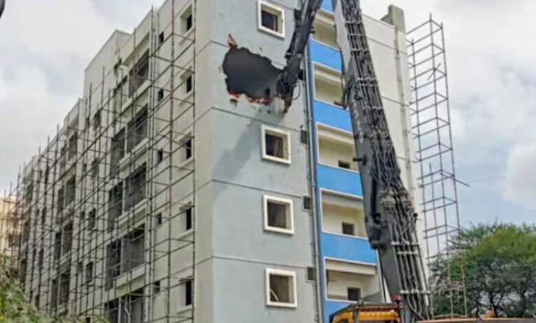 حیدرآباد میں بلند عمارت منہدم کردی گئی ۔ ہائیڈرا کی کاروائی