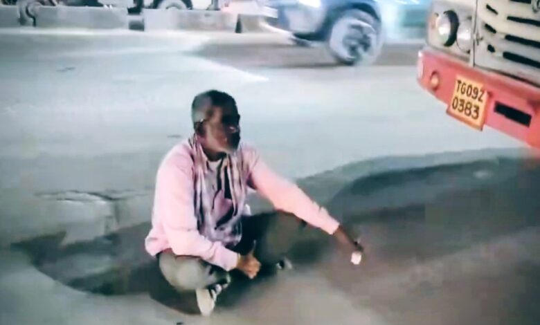حیدرآباد ۔ 5 روپے کیلئے مسافر بس کے سامنے بیٹھ گیا