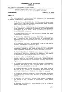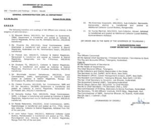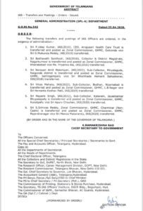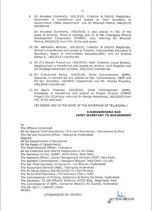 ۔جی ایچ ایم سی میں بھی بڑے پیمانے پر تبدیلیاں کی گئی ہیں، جہاں مختلف زونل کمشنرس کو تبدیل کیا گیا ہے۔ رنگا ریڈی، کھمم، نرمل اور دیگر اضلاع کے کلکٹرس کی بھی نئی تعیناتیاں کی گئی ہیں۔
