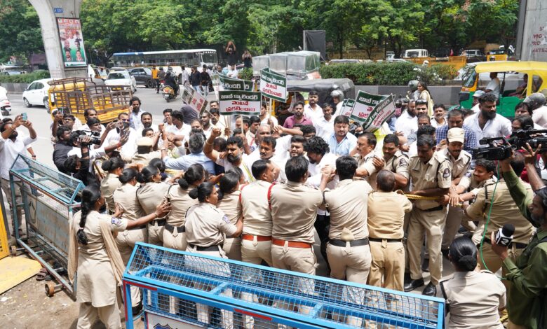 تلنگانہ جاگروتی کی جانب سے دفتر ٹی جی پی ایس سی کے روبرو شدید احتجاج