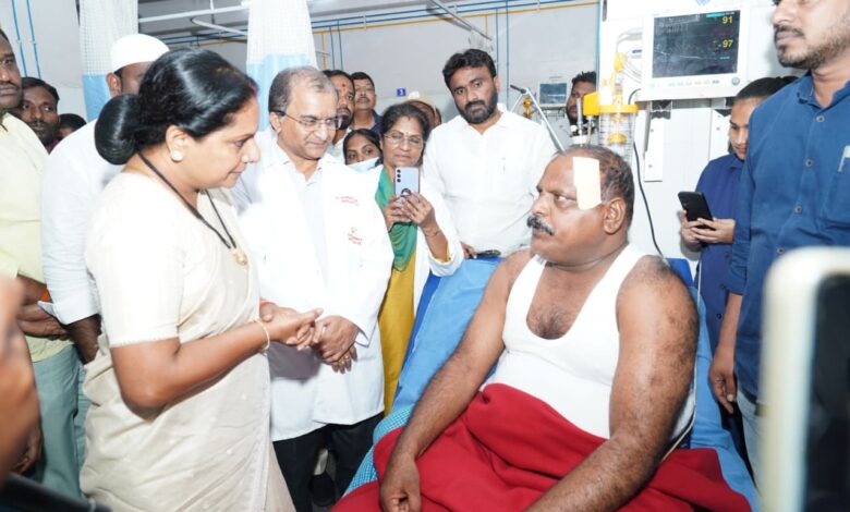 چیوڑلہ بس حادثہ کے زخمیوں کی عیادت عاجلانہ صحت یابی کے لئے کے کویتا کی نیک توقعات