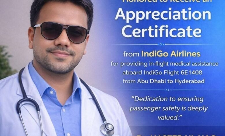 تلنگانہ کے کاغذ نگر ٹاؤن سے تعلق رکھنے والے نوجوان ڈاکٹر حسیب الحق نے انڈیگو ایئرلائن کی ایک پرواز کے دوران اپنی پیشہ ورانہ ذمہ داری کا شاندار مظاہرہ کرتے ہوئے ایک مسافر کی جان بچا لی۔ ڈاکٹر حسیب الحق دبئی سے ہندوستان آ رہے تھے کہ دورانِ پرواز اچانک ایک مسافر کی طبیعت شدید خراب ہو گئی۔