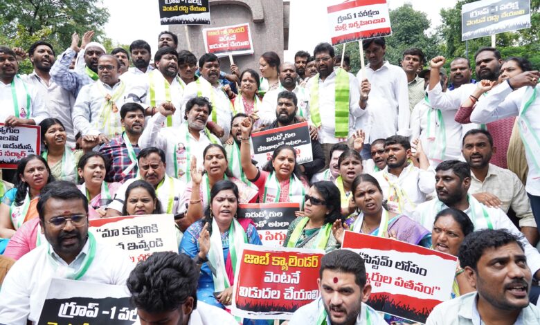 ۔ دھرنا کی قیادت تلنگانہ جاگروتی کی صدر کلواکنٹلہ کویتا نے کی۔ اس موقع پر جاگروتی کے سینکڑوں کارکنوں کے ساتھ ساتھ گروپ-1 امیدواروں نے بھی بڑی تعداد میں شرکت کی اور حکومت کے رویہ کیخلاف سخت احتجاج درج کرایا۔